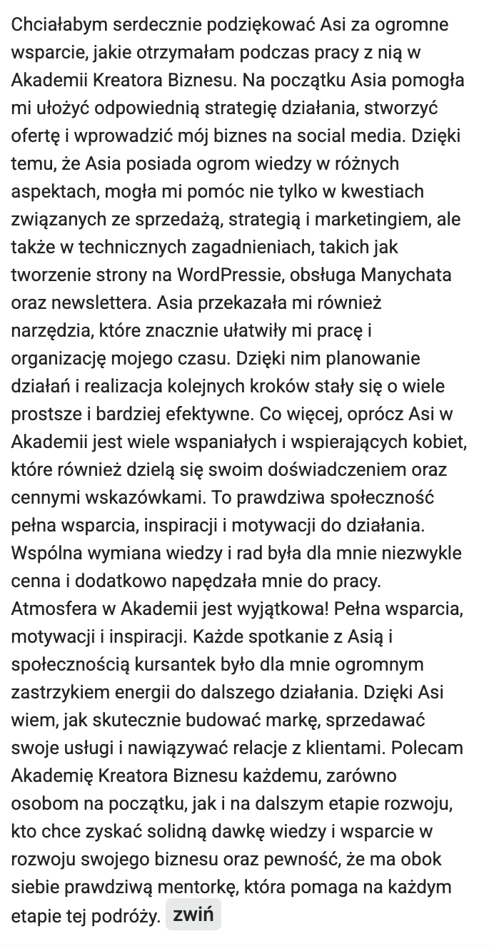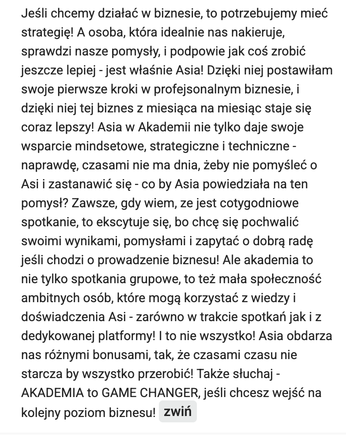 Znam blokady, wahania i momenty, w których biznes staje w miejscu. Znam też drogę, która prowadzi do decyzji, klarowności i pozycji liderki.