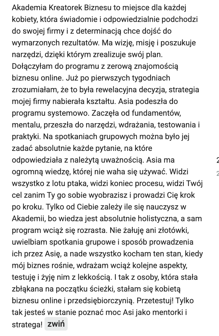To nie jest kurs, nie są konsultacje. To proces decyzyjny dla kobiet, które chcą prowadzić biznes na wysokim poziomie.